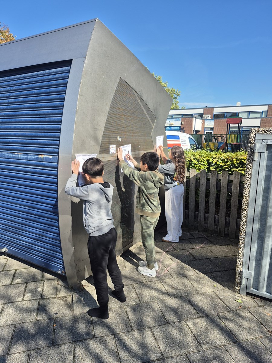 Groep 6 heeft onlangs gebruik gemaakt van het mooie weer. Dit hebben ze gedaan door middel van een loop dictee.