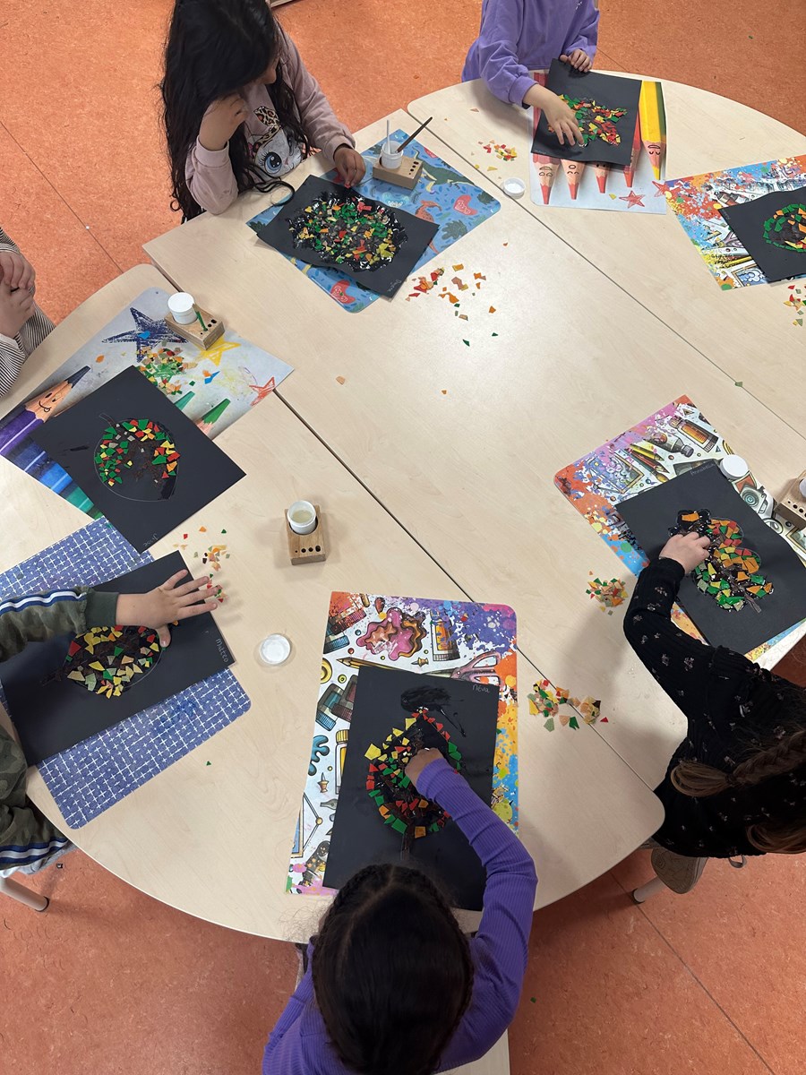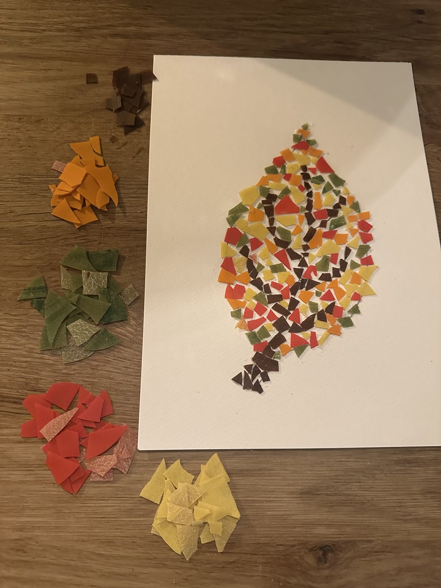 Afgelopen dinsdag hebben we onze mozaïek herfstbladeren afgemaakt.