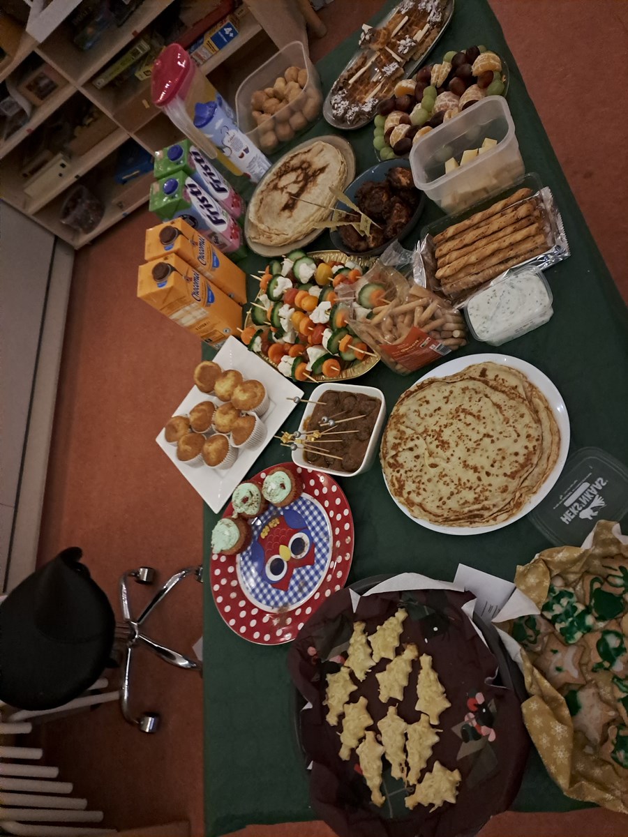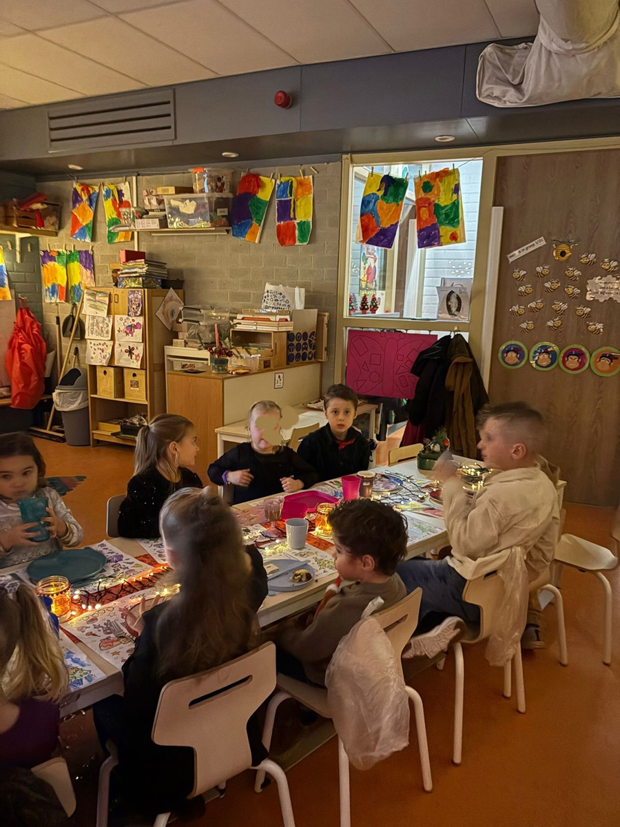 De donderdag voor de vakantie is de traditionele kerstviering op de Ichthus. Iedereen komt in z’n beste outfit in de avond naar school. In de aula is een gezellige samenkomst, met een voorstelling en kerstliedjes. Daarna werd er in de groepen gesmuld van een heerlijk kerstdiner. In de aula waren veel ouders, die onder het genot van een hapje en een drankje samen kwamen.