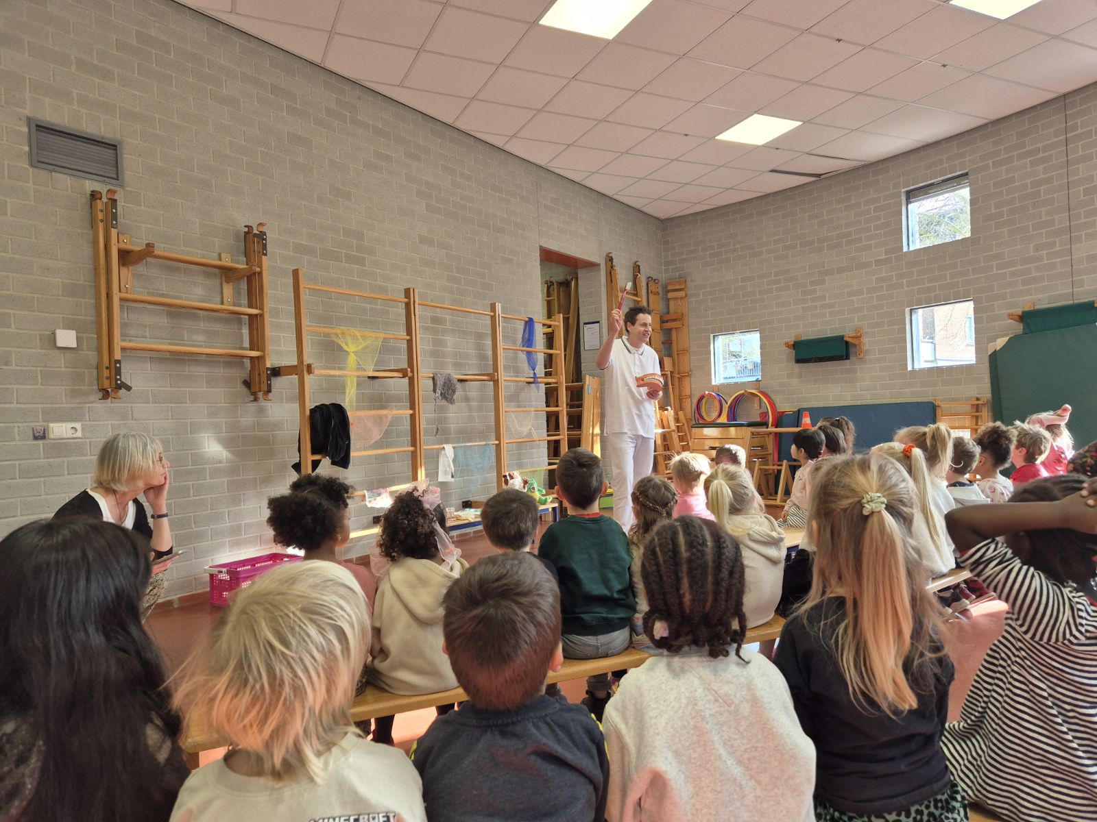 Dit is onze groepBij de kleuters wordt ontwikkelings-gericht gewerkt. De kinderen spelen veel en leren door spel, ieder op zijn/haar eigen niveau. We werken aan de ontwikkelingsdoelen die passen bij de kinderen van groep 1 en 2. We besteden onder andere veel tijd aan het taalonderwijs. Wij werken in de groep met thema's. Op deze manier sluiten wij aan op de belevingswereld van de kinderen en gaan we in op hun vragen en interesses. De kleutergroepen werken nauw met elkaar samen. We zijn verbonden met flexibele muren, die op diverse momenten open geschoven wordt. Tijdens het spelen en werken krijgen de kinderen dan de gelegenheid om activiteiten in de andere klas te kiezen en contact te maken met kinderen van de andere groep. Op deze manier kunnen wij als leerkrachten samen met de onderwijsassistent alle kinderen helpen waar dat nodig is.