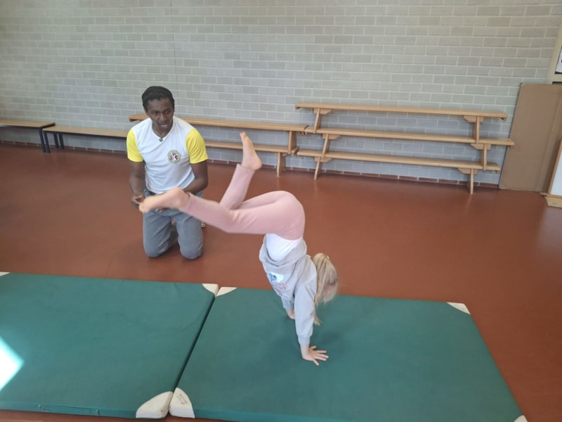 Afgelopen dinsdag hebben de kleuters kennis gemaakt met het Braziliaanse Capoeira! Wat een feestje! Met Braziliaanse muziek hebben de kinderen oefeningen gedaan en geoefend met ritmes op een muziekinstrument.