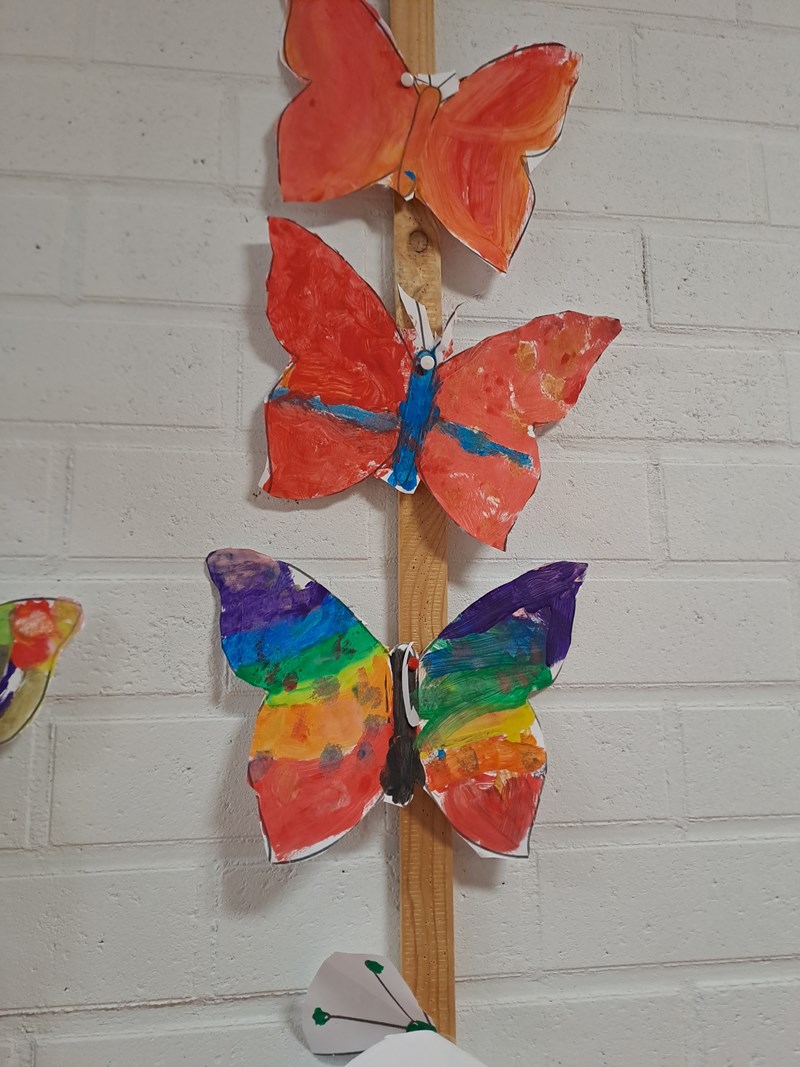 Bij de kleuters wordt hard gewerkt aan het thema kriebelbeestjes. Er worden vlindertjes gemaakt, beestjes onderzocht, nieuwe woorden geleerd en een huisje voor de beestjes gemaakt.