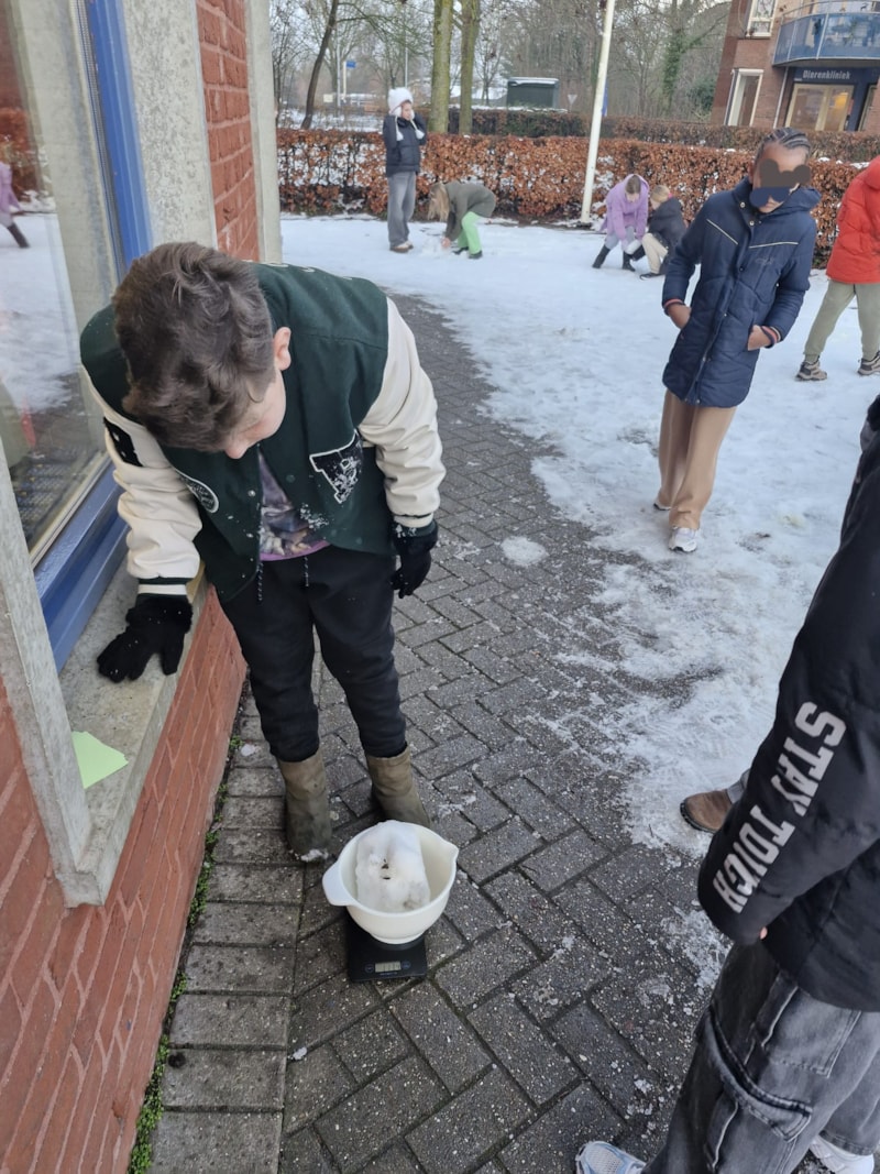 De leerlingen van groep 7 hebben een rekenles met sneeuw: